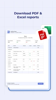 For Business - Use as a cash register to track the movement of money, as a simple ledger. Export reports in Excel or PDF format. Know how much money is left. It is easier to manage account books on CashBook compared to Pen & Paper.