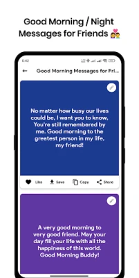 Good Morning Night Messages App lets you browse morning/night wishes, and mark them as favorite. Show your Love by Sweet Moring Night messages, love texts, quotes and wishes for all occasions with your boyfriend, girlfriend, friends, or anyone you want.