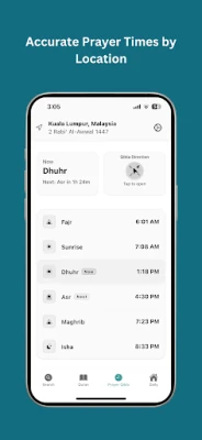 Get precise prayer times for your location with flexible prayer notifications. Instantly find Qibla direction with our accurate compass feature. Never miss Fajr, Dhuhr, Asr, Maghrib, or Isha prayers again.