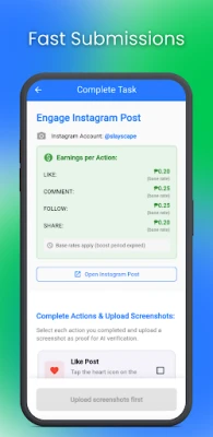 • Upload screenshot proof of completion• Earn points that convert to real money