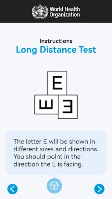 The principle of WHOeyes is based on how an eye care professional would test your vision using a conventional chart in a clinical setting. The accuracy of WHOeyes was tested in three research studies. The app is does not replace the need for regular eye checks by an eye care professional, even if your vision is good. WHO and the developers of the app cannot be held responsible or liable for any incorrect results.